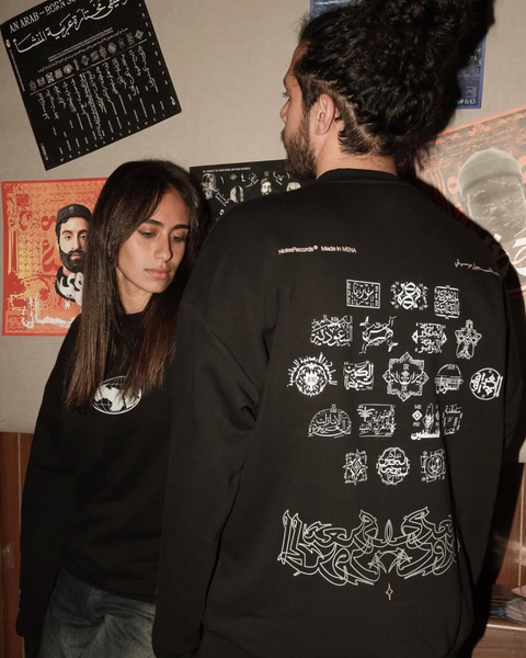 Beyond innovation, the collection paid tribute to unity and creative power within the Arab world. The sweatshirt’s back design honored a vision of a borderless region spearheading global culture and music, adorned with custom calligraphic stamps representing each nation across the Middle East and North Africa.